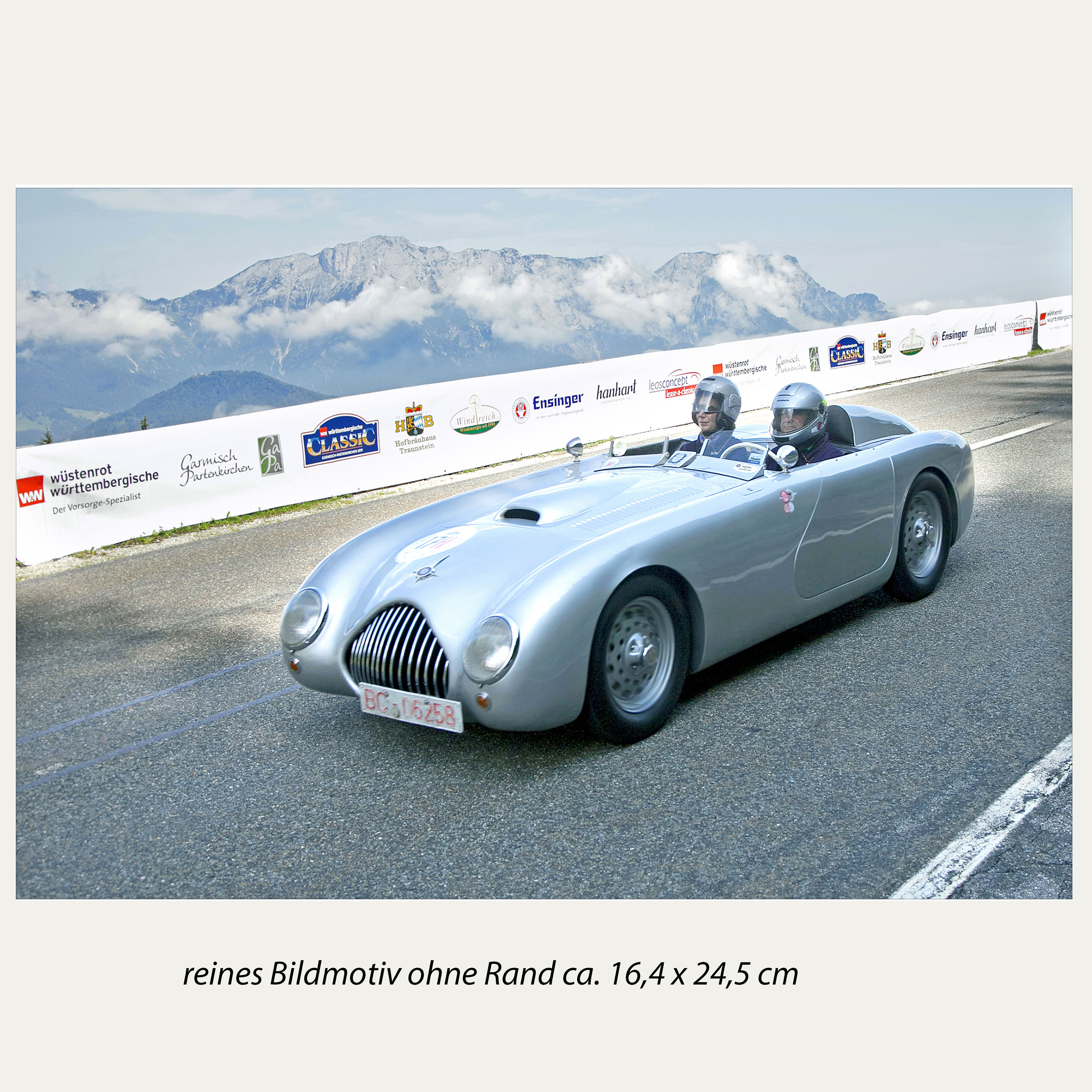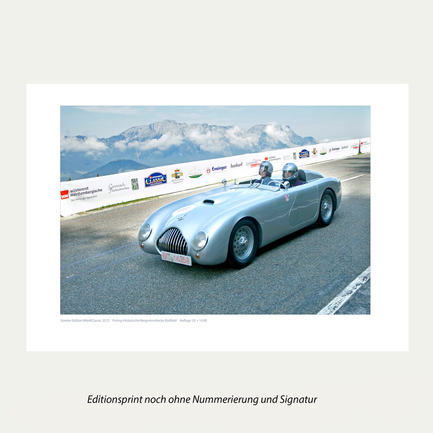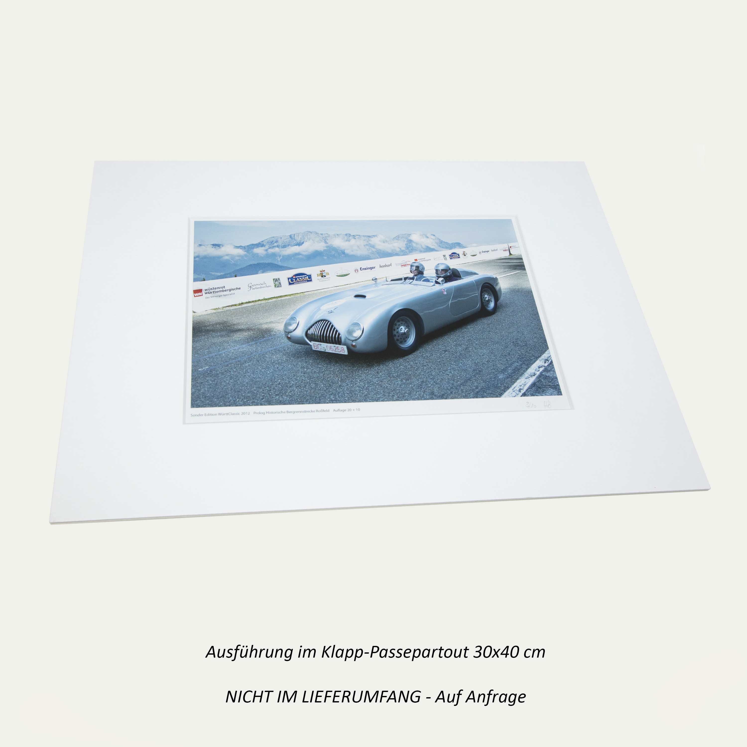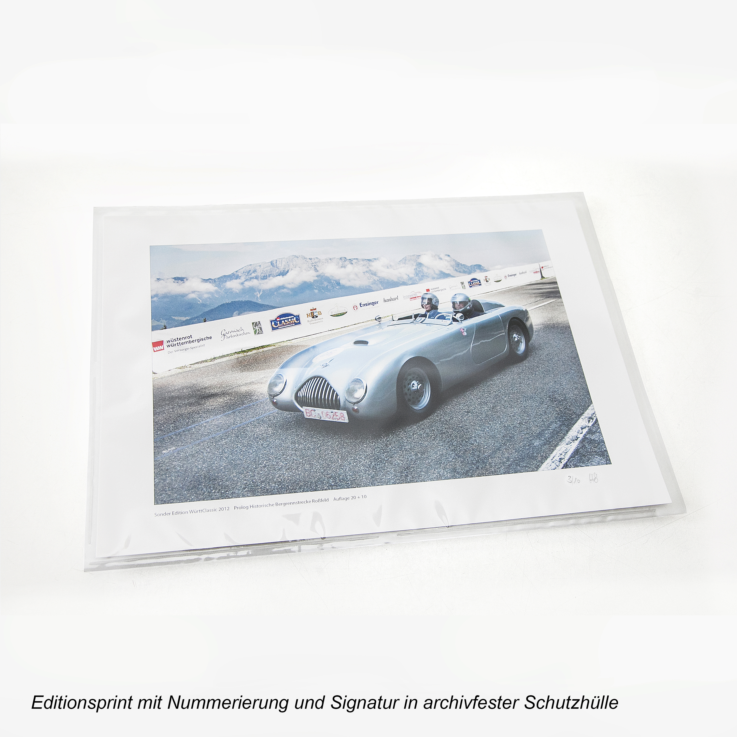 Wunderbares Sammlerstück für Oldtimerfans - zu sehen ist ein Motiv aus dem Prolog an der legendären Rossfeld Panoramastraße bei Berchtesgaden. Die Edition wurde als "Danke-Schön" für die Sponsoren der 17. Württembergischen Classic Oldtimer Ralley in einer Auflage von 20 + 10 Künstlerexemplaren aufgelegt.
